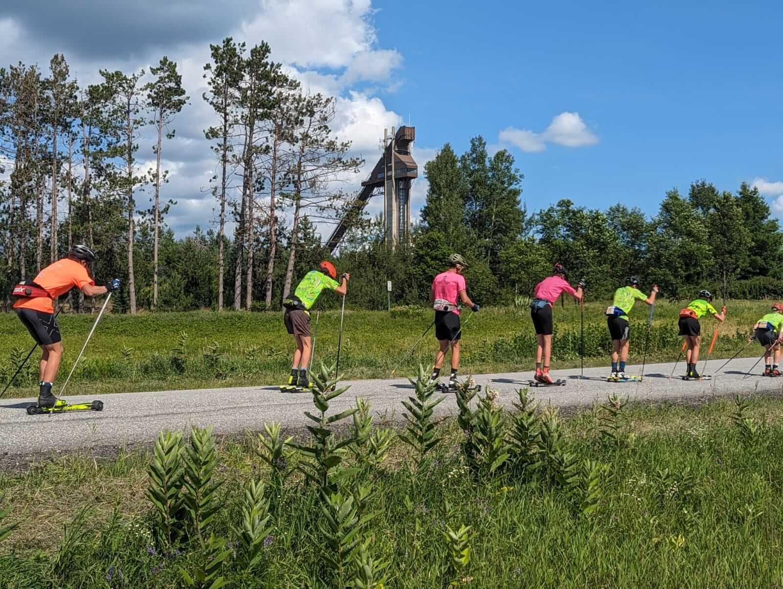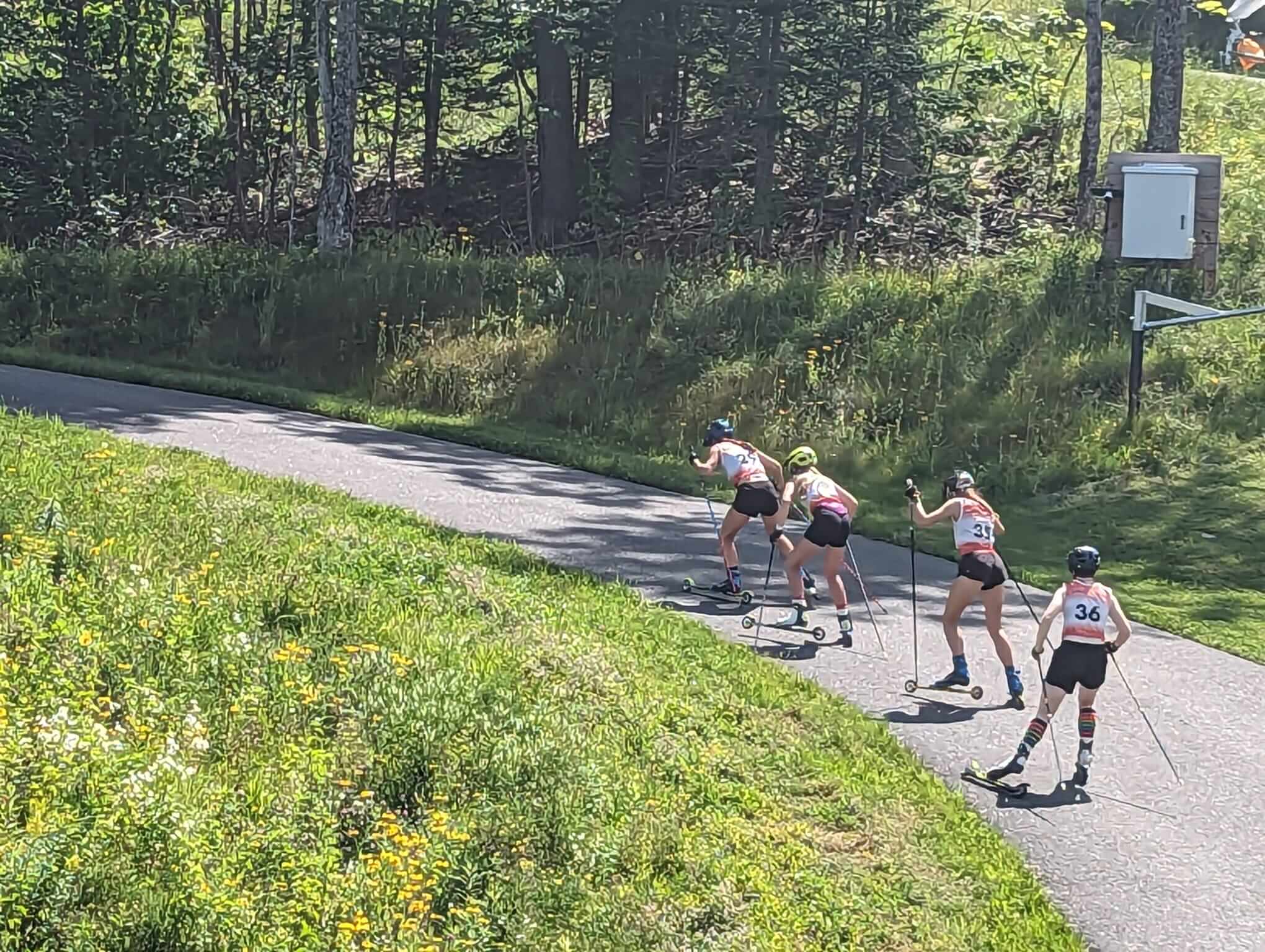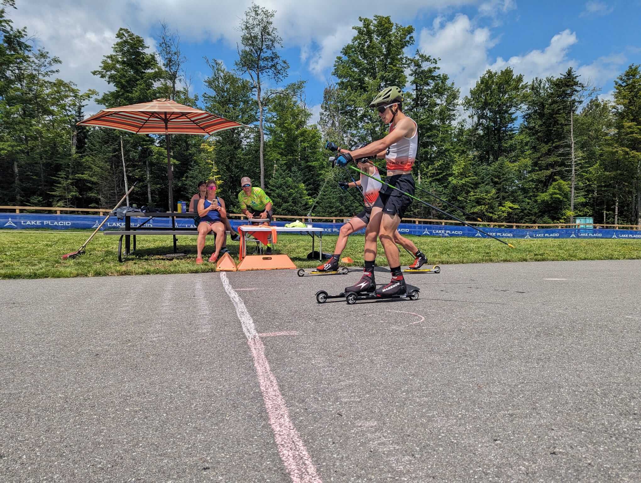 There were also a couple of days where the skiers looked up in their workouts and saw a skier that many already looked up to. Ben Ogden, the current holder of the FIS World Cup’s Best Young Skier bib, hopped over Lake Champlain from Vermont to join U16 camp for a couple of days. Ogden hopped in with U16 campers for an uphill running time trial up Mt. Van Hoevenberg, and then got to working through classic sprinting specifics with his younger peers on the rollerski loop (Video HERE). Ogden’s coach on the US Ski Team, US Head Coach Matt Whitcomb, also joined in with campers, working through skate technique, delving into the little nuances of ski racing, and adding to the energy and exuberance already observable in this newest group of nationally competitive skiers.