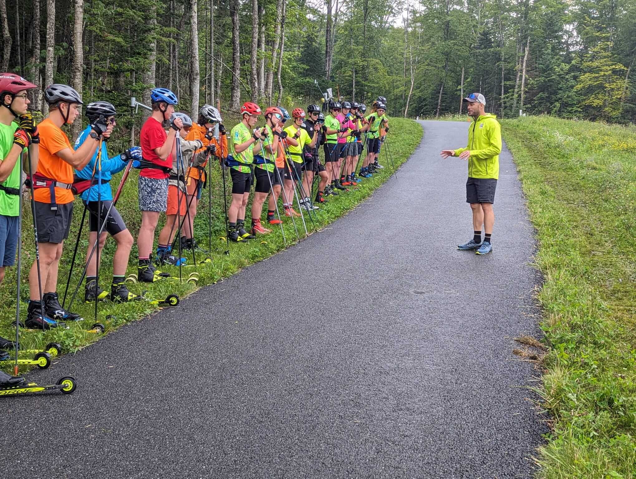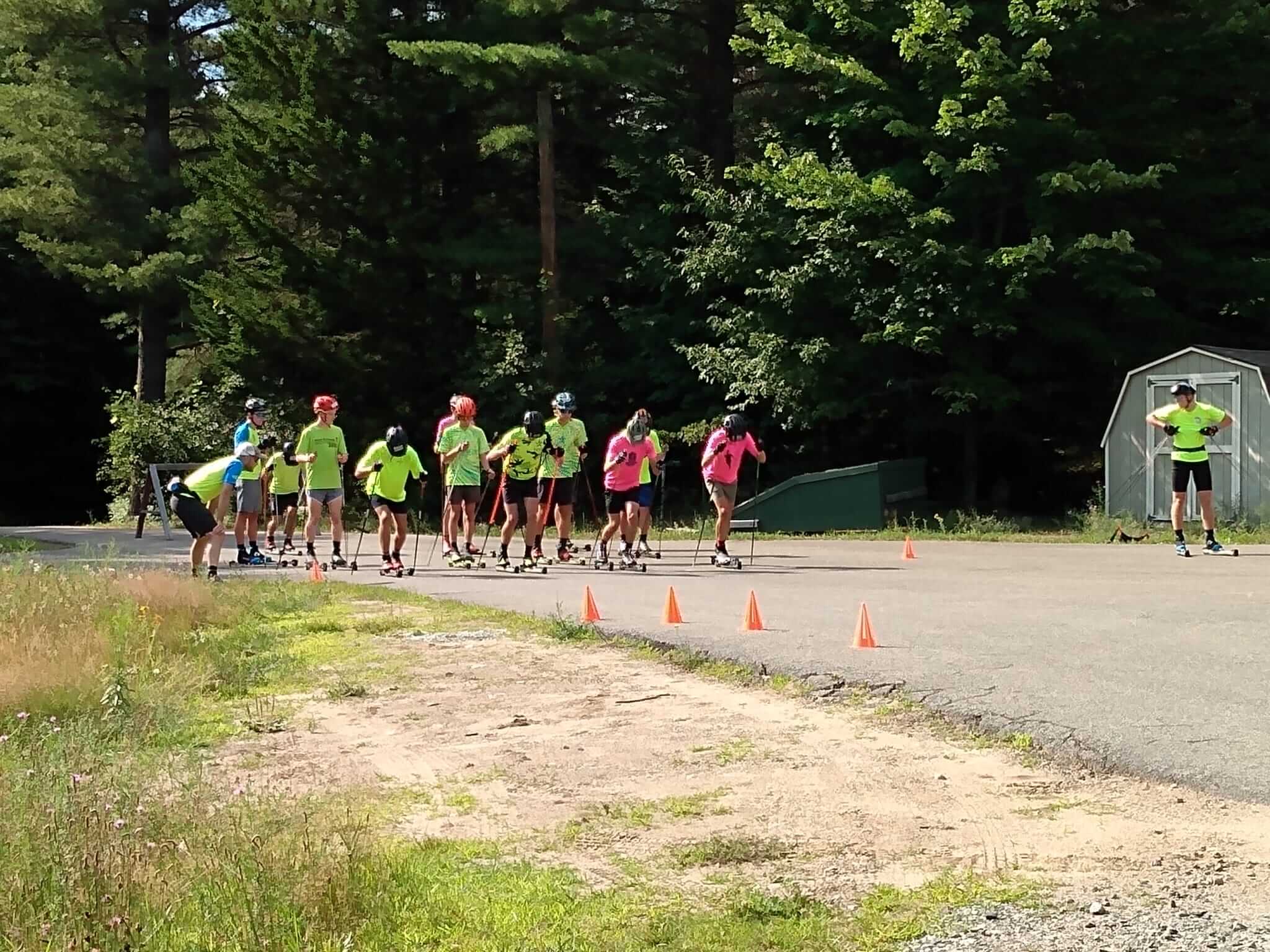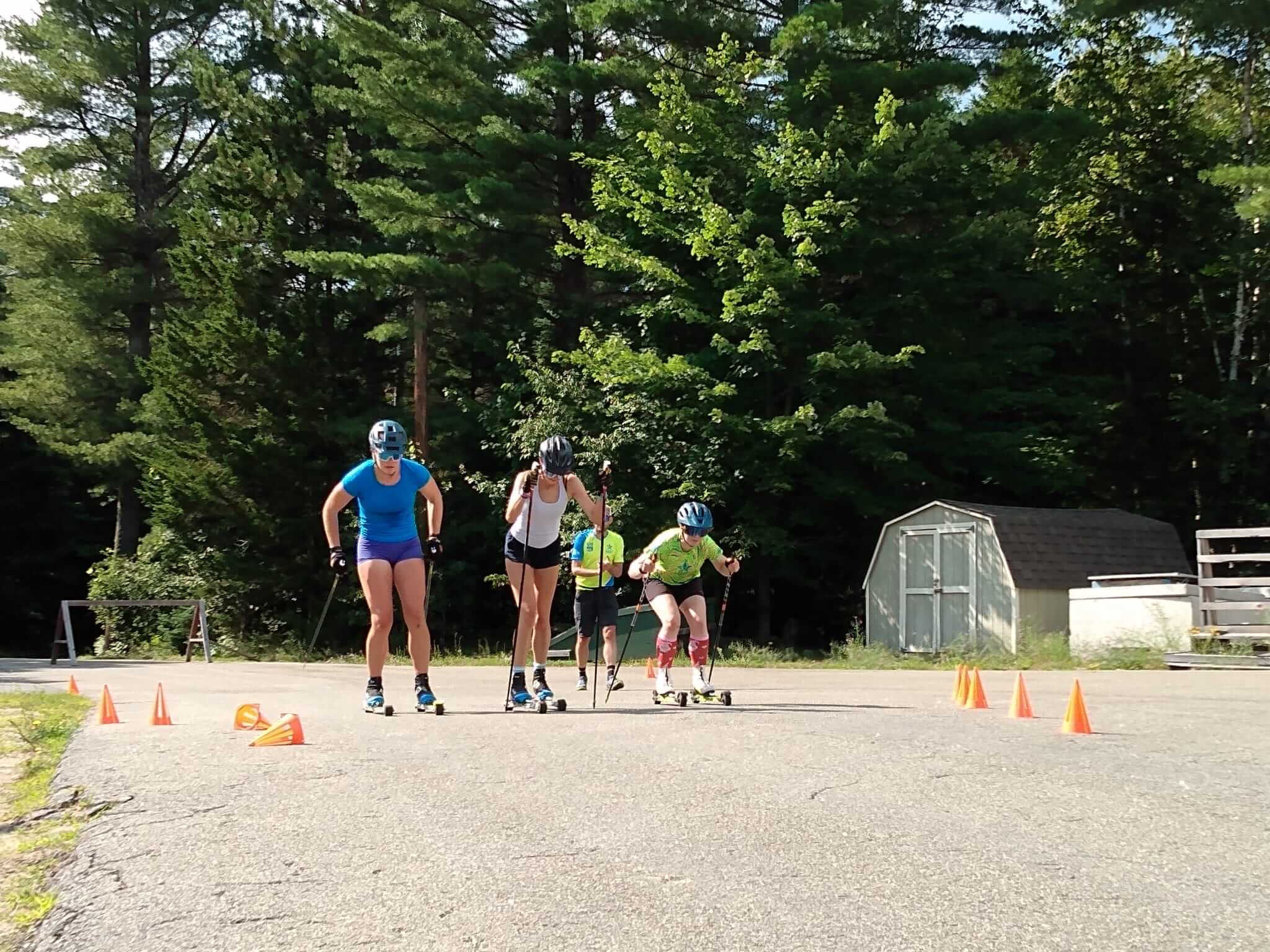 The U16 skiers present spanned ski communities from Maine to Alaska, came together in the Adirondacks and enjoyed all that has drawn skiers there for nearly a century. Mountain runs through the pines, jumps in the Lake after each workout, and newly re-developed ski training facilities, including a rollerski track that follows the Lake Placid ski 5 k step-for-step. They were led by a sampling of some of the talented coaches working in junior skiing across the country.