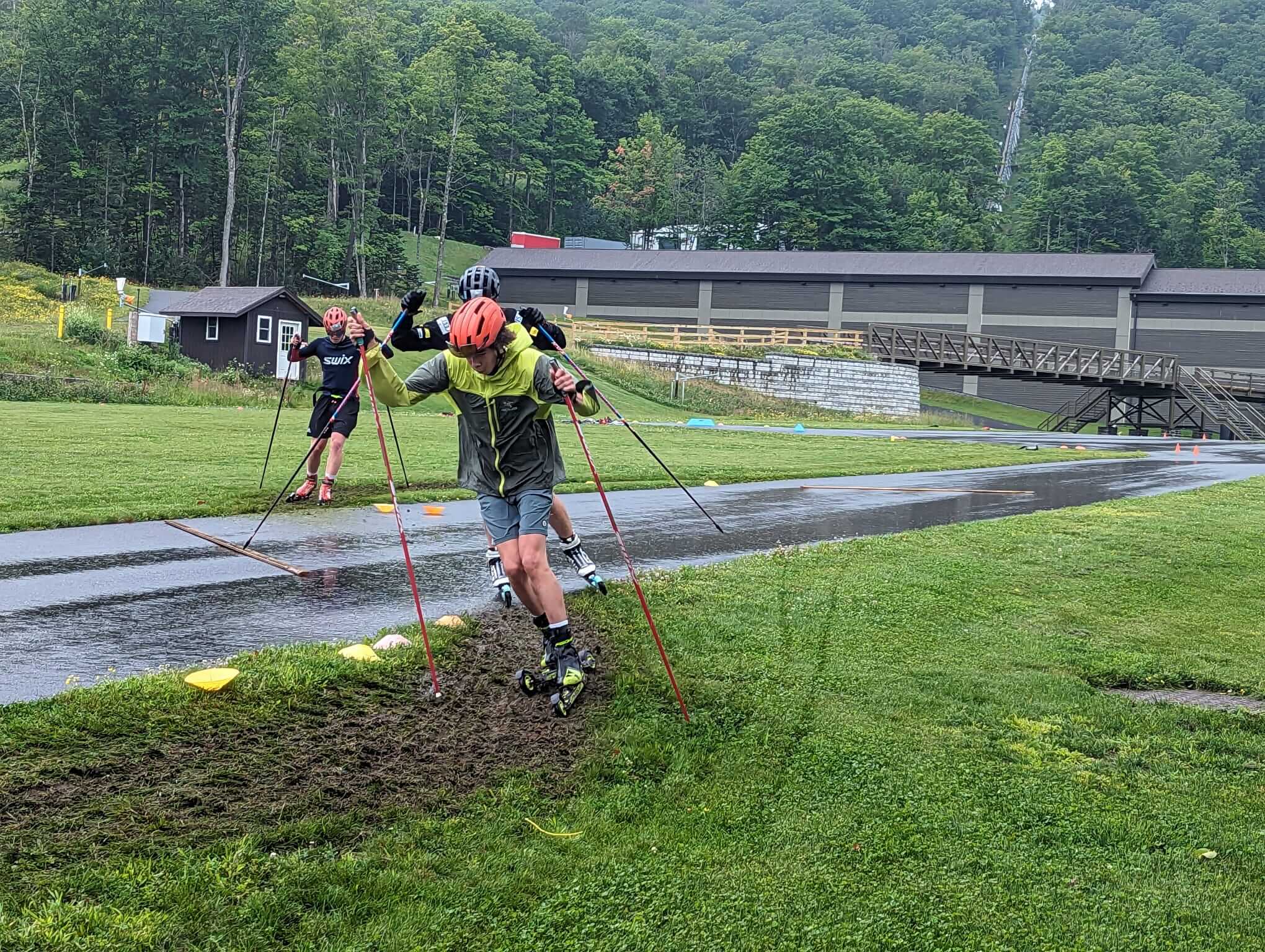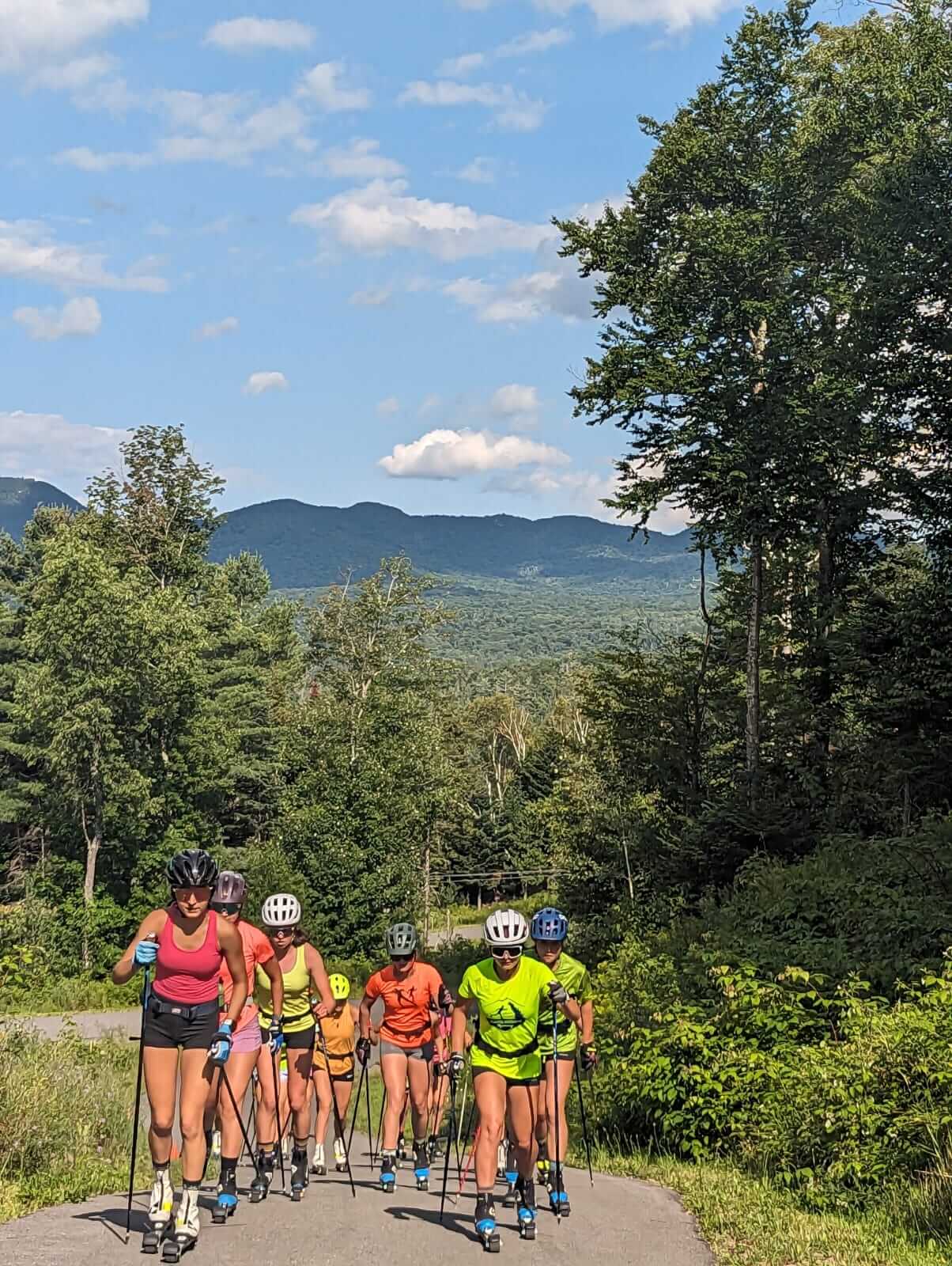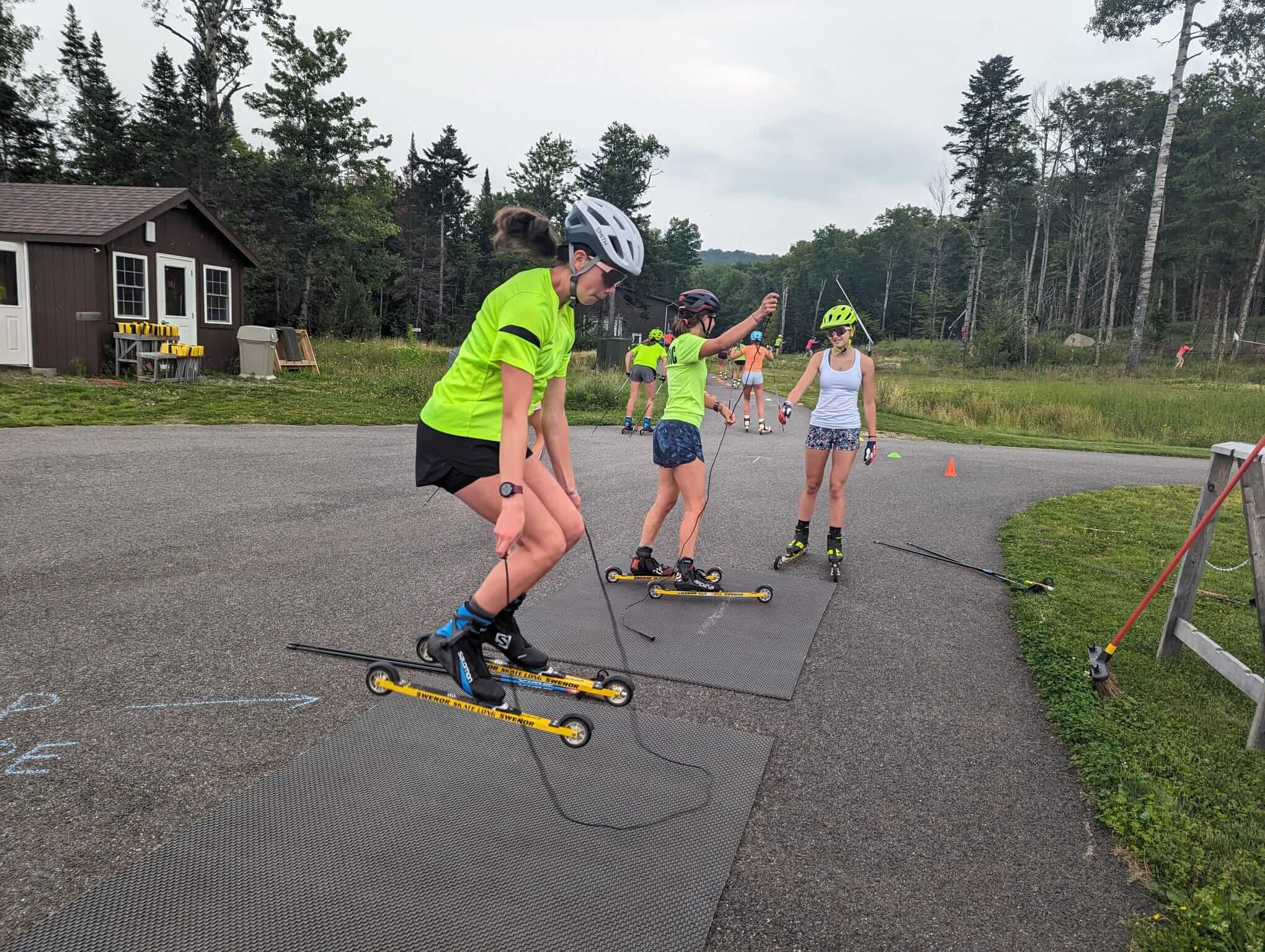 The U16 skiers present spanned ski communities from Maine to Alaska, came together in the Adirondacks and enjoyed all that has drawn skiers there for nearly a century. Mountain runs through the pines, jumps in the Lake after each workout, and newly re-developed ski training facilities, including a rollerski track that follows the Lake Placid ski 5 k step-for-step. They were led by a sampling of some of the talented coaches working in junior skiing across the country.